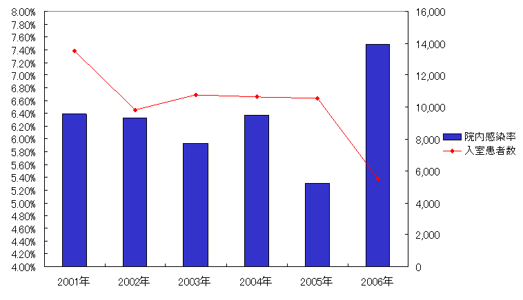 (院内感染率:ICU入室後48時間経過後に感染症状のあった患者率)